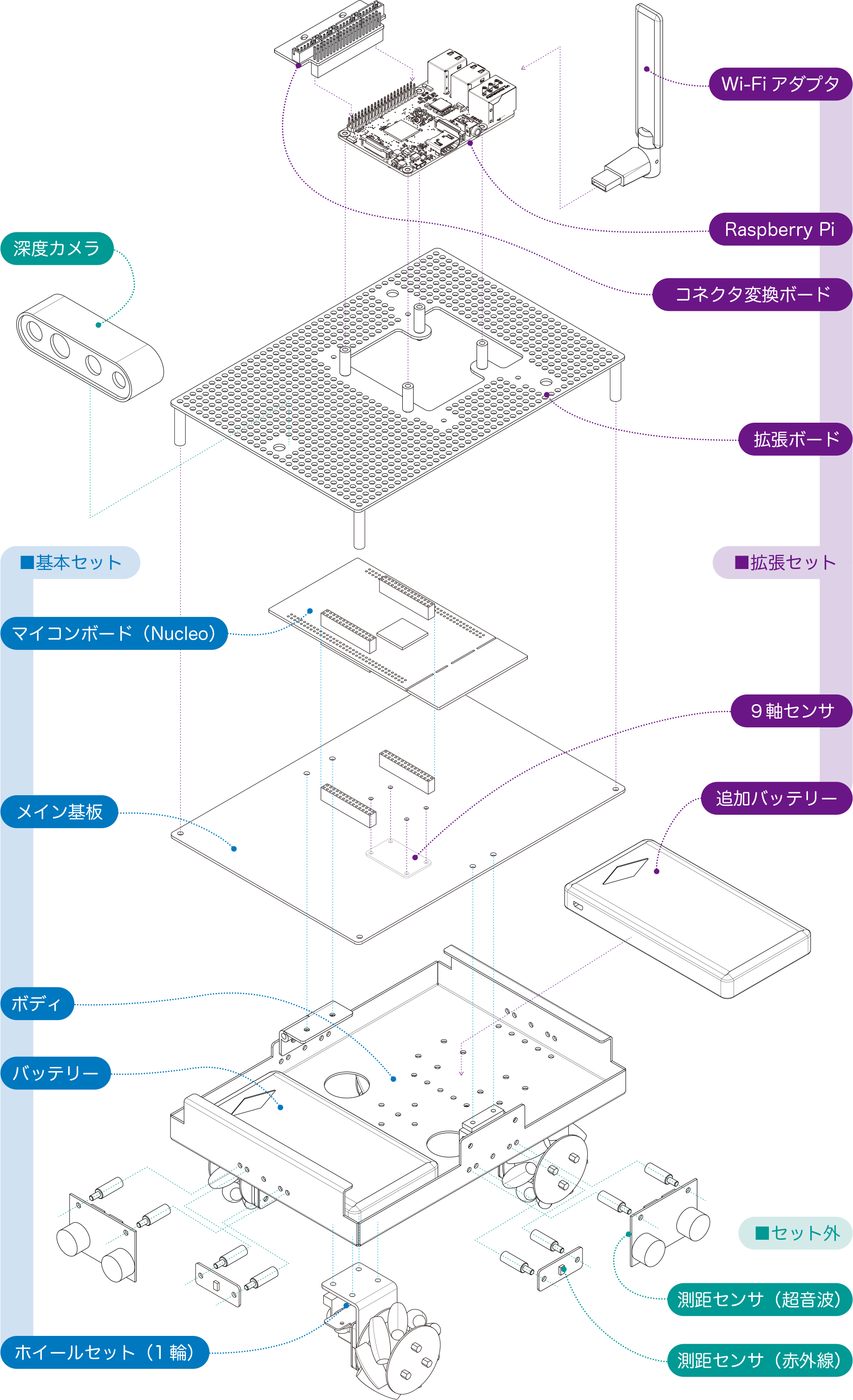※青色で示した部分が基本セット、紫色で示した部分がオプションの拡張セットです。
